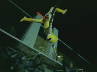 Cuts silhouette center portion of shot 1 to remove Stinger passing through monster; trims shot 2. |