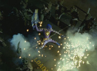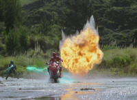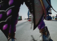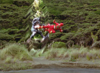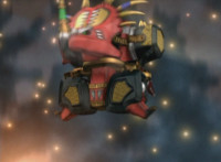 Red uses his Raptor Cycle when fighting Elsa, rides away from Zeltrax blasting an explosion behind him, then does a super kick into Zeltrax in midair. |