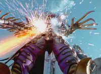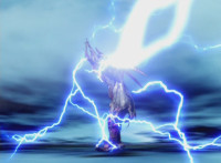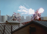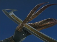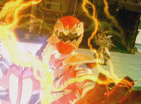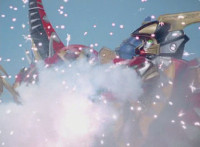 Cuts follow-ups of Dino Stegazord using its Stinger to sparkily slash monster a few times. |