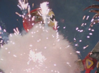Cuts follow-ups of Black shaking up and Megazords collapsing. |