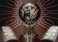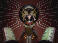 Tommy taunts Mesogog while captive, escapes with the Black Dino Gem, then morphs for the first time this season. |