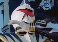 White strikes Ugly Monster one last time, knocking him down, where he rolls to a recovery, the Rangers regroup to face him, and White speaks in the lead. |