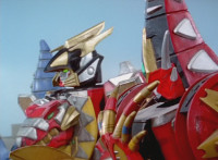 Each Ranger leaps up and merges into the forehead of their respective Dinozord. |
