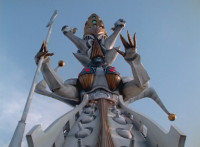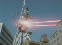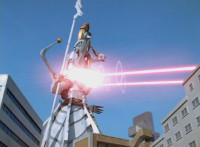 Zelzord fires boob-lasers forth, blowing up a mountain. |