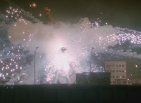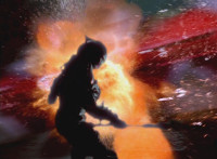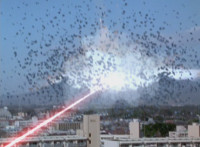 Cuts follow-up close up of Megazords getting blasted, Blue reacting, then the Megazords collapsing. |