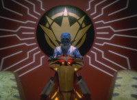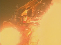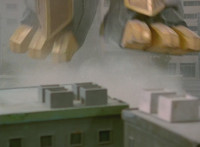 Shot 1 is given energy effect to make sky darkening happen instead of being spontaneous; cuts follow-up of Megazords glancing about up close. |