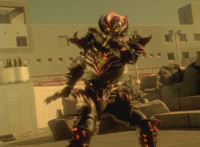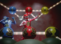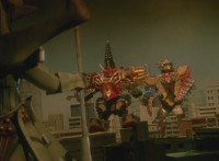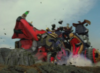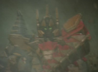 Suddenly, Zelzord uncollapses and unexplodes, its chest sucking in air and debris. Red reacts, as does Blue, as Thundersaurus & Mezodon start being pulled in by the vaccum effect. |