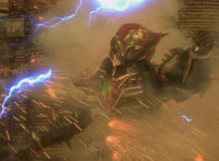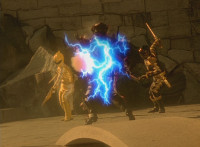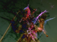 Zeltrax rolls and recovers, Black flips over with a charged Staff, Kira flips over with charged Ptera Grips, both hitting him at the same time. He crackles and bursts. |