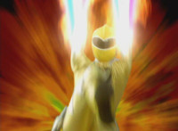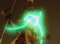 Cuts follow-up of Zeltrax collapsing, then later recovering, getting finally struck by Yellow & Black's golden energy blasts. |