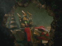 Cuts follow-ups of Black trying to enter tube, only to get attacked by electrified vines, which he defeats. |