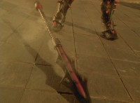 Pan up as Zeltrax slowly walks forth, blade held outward. |
