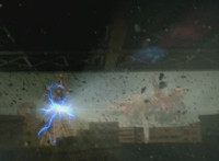 Zeltrax pushes Black against a wall, then throws him down. He gets back up and tries to strike, so he sparkily strikes first. |