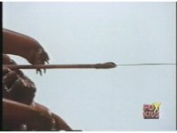 Close on Squatt clasping hands together and Baboo holding up pointing right hand, before they look at each other with a nod, then head off to our right. |