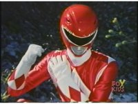 Close on Red in Megazord cockpit, who gestures fingers into fist then grips control dramatically. |