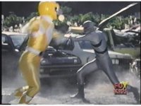 Blue, Yellow & Black Rangers race around the corner of the junkyard, spot their teammates, and rush to their side. After a moment, Yellow & Black turn to our left and run off that way. |