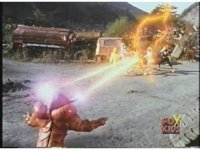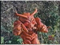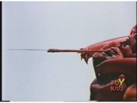 Zoom out as Fighting Flea lands and turns around, motions arms against head, releasing a pair of crackling orange beams from his antennae to our lower left. |