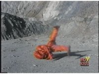 Fighting Flea is thrown into the air, falls, and rolls into quarry. |