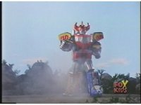 Megazord poses battle ready, then begins to slowly march forth, shot zooming in as it does. |