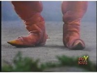 Pan up from Megazord's staggering feet, as it stumbles back, chest smoking, regaining bearings. |