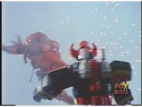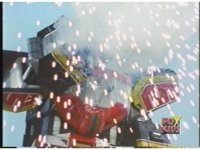 Repeated from a closer angle, Megazord spark bursts, which grows to a more pronounced explosion engulfing it. |