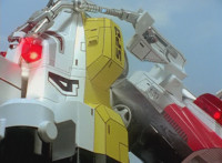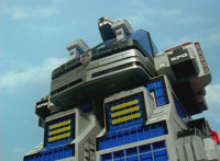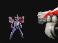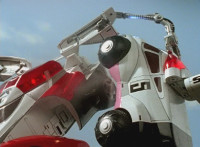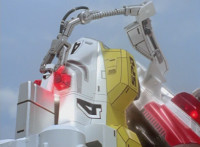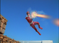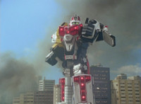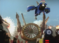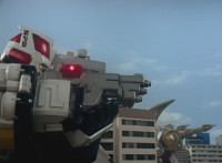 Delta Squad Megazord fires its Mega Blaster into the air. |