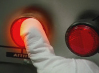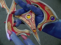 Blue finishes inserting his Delta Morpher into the console and grips control stick with both hands. |