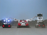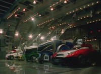 The four Delta Runners drive off from the hangar, leaving the first one behind. They drive down the tunnel in single file, Delta Base opens its side compartment, the four Delta Runners exit, and make their way forth from the base, each in their own manner. |