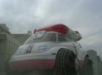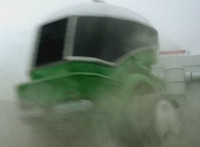 Drill Robot's drilltip spins to life, as its fan section spins to life. Praxis presses down on the pedal, and Drill Robot rolls forth. |