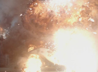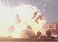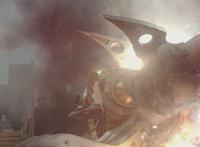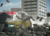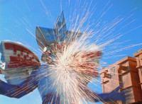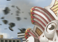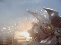 Cuts follow-ups of Drill Robot smashing through a building. |