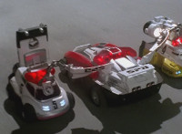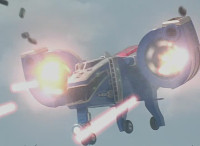 Delta Runner 1 swerves around the corner, Red nod-talks then presses the "attitude" buttons, causing Delta Runners 1 to extend its side crane arms out. Pink points, Red replies, and Delta Runner 1 reaches out and snags Delta Runners 4 & 5, shaking up Pink, Yellow speaking. Praxis notices, and fires Drill Robot's lasers forth, blasting around Delta Runners 1, 4 & 5. Green speaks and gestures, shifting Delta Runner 3's side compartment open and firing the Mega Blaster. Blue also speaks, gripping his control stick. |