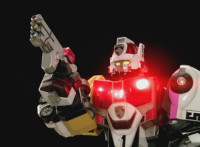 Delta Squad Megazord aims its Mega Blaster forth from various angles. |