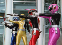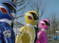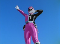 Pink gets her number highlighted, and poses. The five Rangers pose yet some more, this time as a team. |