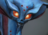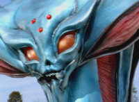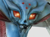 Broodwing opens his three eyes, glowing initially, while upside-down. |