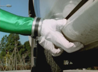 Hydrax stands between the two pieces of the car, she looks at her hand, Green speaks, she then looks over to him, as he holds his Delta Morpher out and opens it up, showing a water cutting device on the display inside. He then lowers his arm and talks. Hydrax lowers her arms and laughs, causing Red to stagger back to his teammates as she speaks. The four Rangers watch, as Hydrax exposits. |