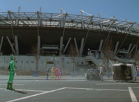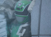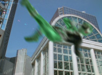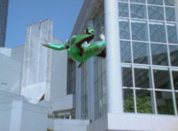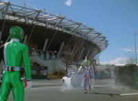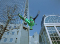 Cuts final shot before it lingers on the Megazord; cuts follow-up of Green exiting his cockpit. |