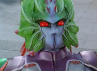 Green rolls back up, Hydrax attacks, so he backflips out of her way, then kicks her, and quickly begins to roundhouse kick her. |