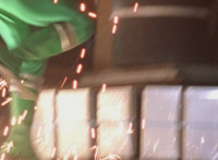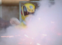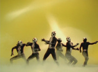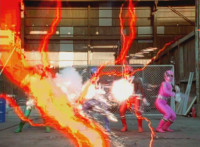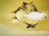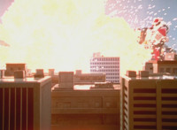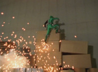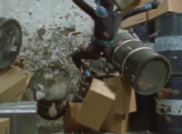 Trims start; cuts follow-ups of Krybots being engulfed in flames, then doused with water, then being blown apart. |