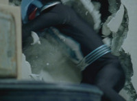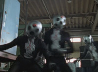 Cuts final shot before he backhands a Krybot, then cuts follow-up of him dropkicking another down. |