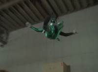 Green backflips his way through a horde of Krybots, then footsweeps one down. |