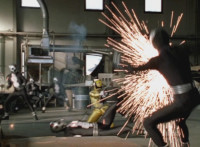 Laser effects added to shots 9 & 10; cuts final shot before he hits Krybot again, then cuts follow-up of Krybot falling over railing sparking. |