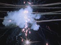 Recycled, but first time in context; cuts follow-ups of more blaster firing and another cockpit sparking. |