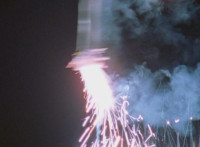 Each shot is trimmed to remove visibility of flames below them; US replaces follow-up due to fires on the ground. |
