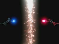 Krybots bounce around the room, sparkily striking each other as they do so. |