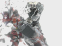 Pan up on Orangehead as he reacts. Yellow turns and summons into her Delta Morpher. |