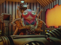 Cuts follow-ups of Krybots sparkily hitting each other, then falling down and standing in a daze. |