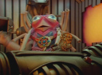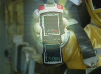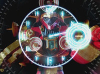 Zoom out from Bugglesworth, as Dish Robot finds itself standing in front of a clockface and two alternating X or O symbols. Zoom in on Yellow, as Delta Squad Megazord's left arm display shows X and O flashing, Bugglesworth seeing the clockface over him now, before the red X appears on the Megazord display. Zoom out from Yellow with her red X'd Morpher, as her teammates gesture arms and speak in unison. Zoom in on Dish Robot as Bugglesworth touches his hand to his mouth in shock. |