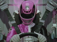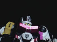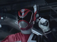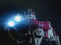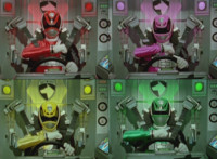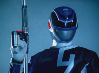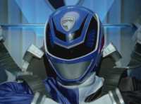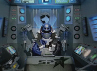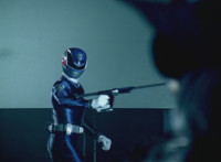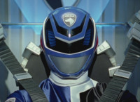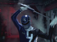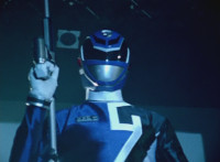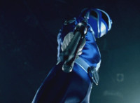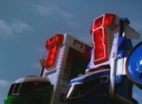 Close on Blue speaking. Delta Squad Megazord then readies its Blaster. |