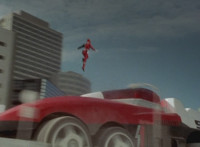 The Delta Runners all exit the Delta Base, then ride down the street. Red leaps up into his Delta Runner 1. |