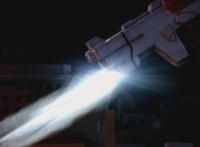 Delta Squad Megazord fires its Mega Blaster straight on up close. |
