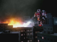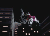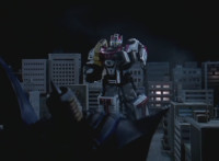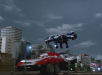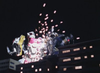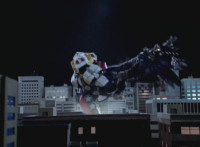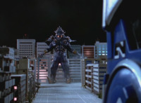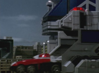 Delta Squad Megazord releases Giganis, sending him flying across the city, falling onto the street. The Megazord faces him. |